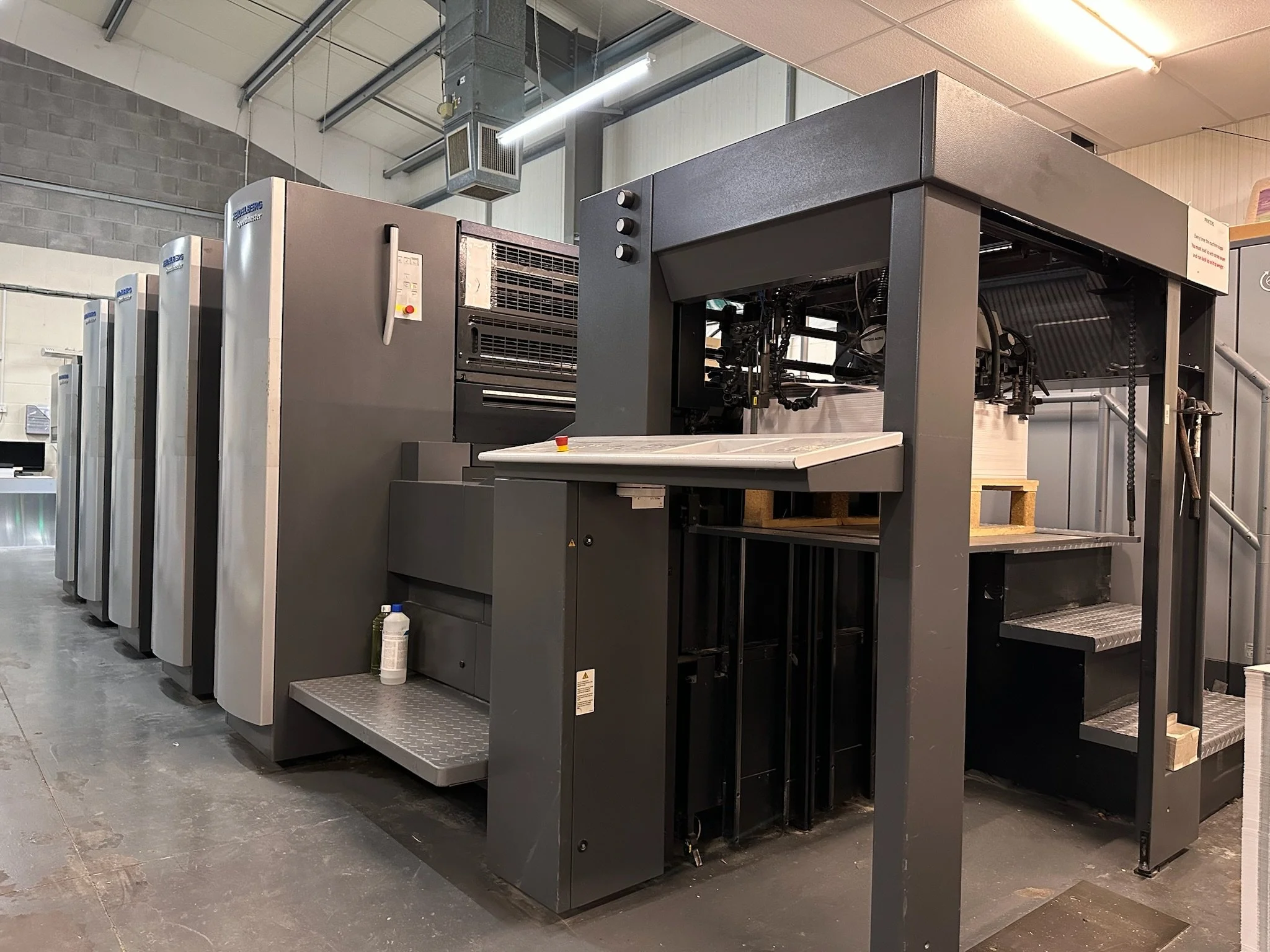 At the heart of our operation is the Heidelberg Speedmaster CX75, a modern 4-colour lithographic press renowned for its precision engineering and speed. This press is a game-changer for quality and efficiency. It uses advanced controls to keep registration pin-sharp and colours perfectly balanced on every sheet.